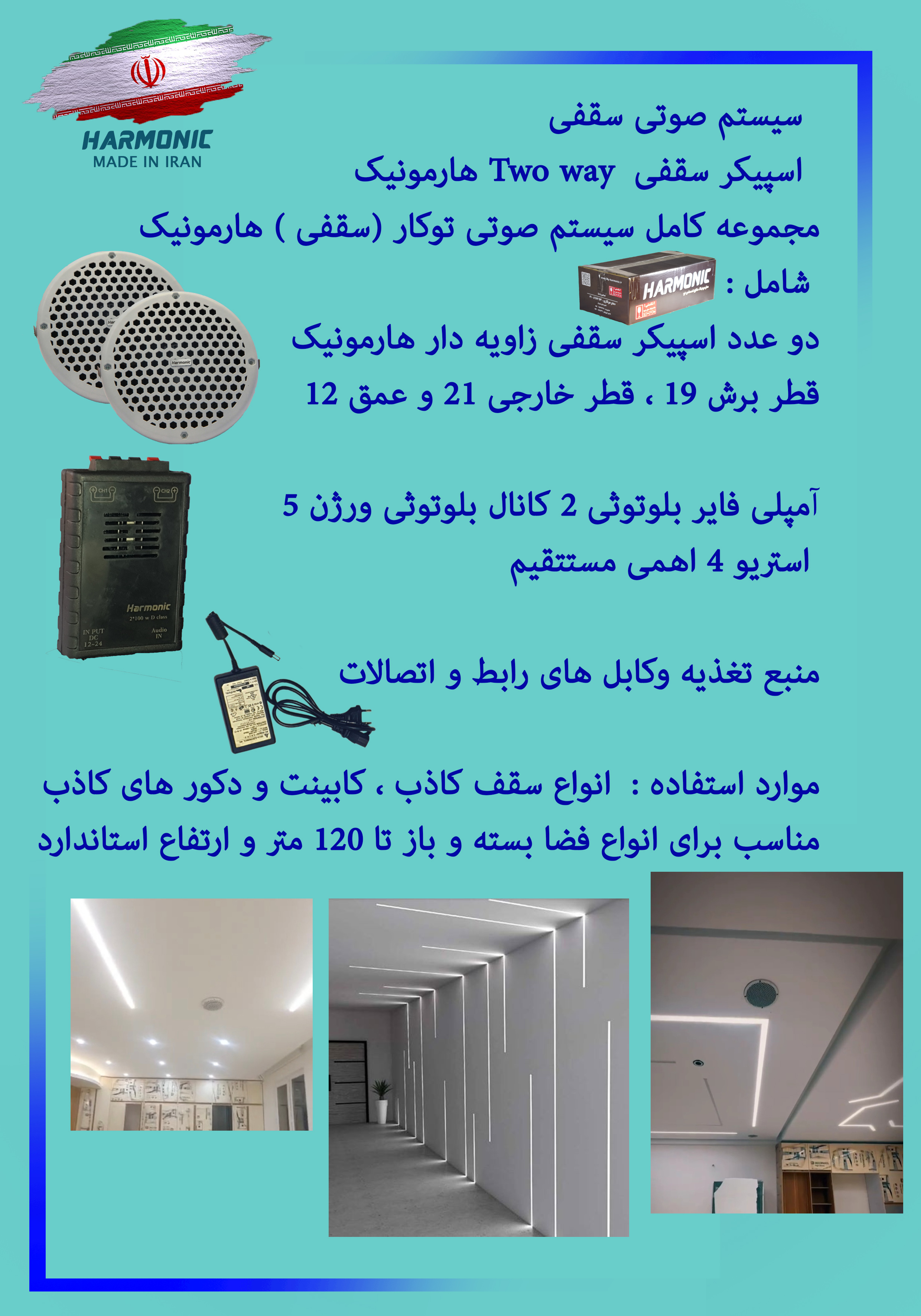 اسپیکر سقفی هارمونیک سایز 6 اینچیtwo way تحت زاویه 30 درجه
